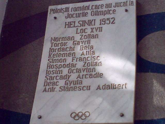 Az emléktábla a Floreasca uszodában található.